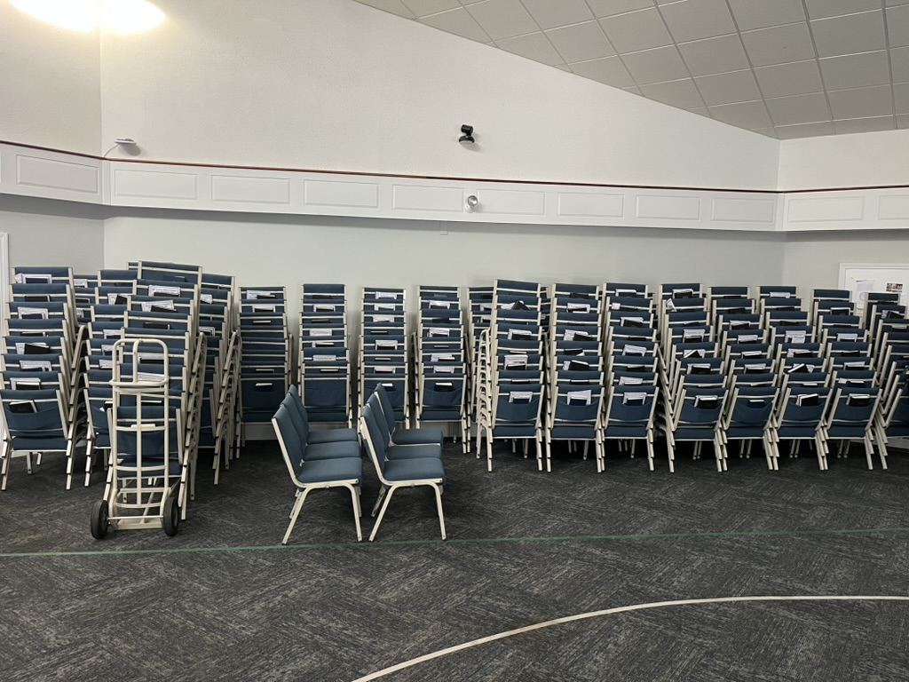 ~275 chairs. $20/chair.